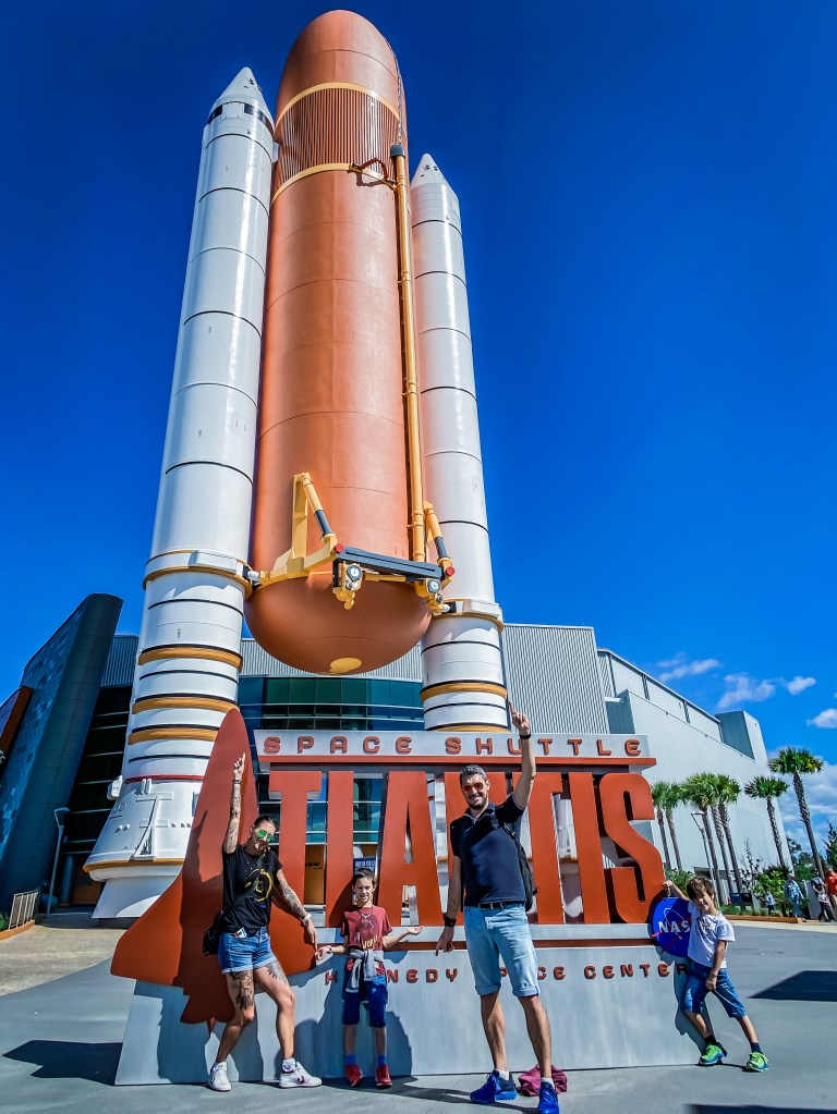 Tout le monde est excité. Nous allons nous rendre à Cape Canaveral pour ma journée d’anniversaire. Quel incroyable symbole. Moi qui vient de raccrocher avec l’aéronautique. Me voilà propulsé avec ma famille sur ce site emblématique, unique, et ô combien légendaire : Kennedy Space Center. Nous avons une trentaine de minutes de route, et nous roulons tranquillement, histoire d’apercevoir sur les bas côtés quelques alligators. Bonne pioche ! Nous en voyons quelques-uns et au fur et à mesure que nous nous rapprochons de KSC, nous en voyons davantage. Le coté sauvage est largement préservé et c’est une bonne nouvelle. Nous arrivons sur le site et passons au guichet. D’entrée, les quelques fusées installées dans le « Rocket Garden » en imposent. « EXPLORE ». Tel est le maître mot ici. Ne vous inquiétez pas, nous avons bien l’intention de ne pas en perdre une miette !