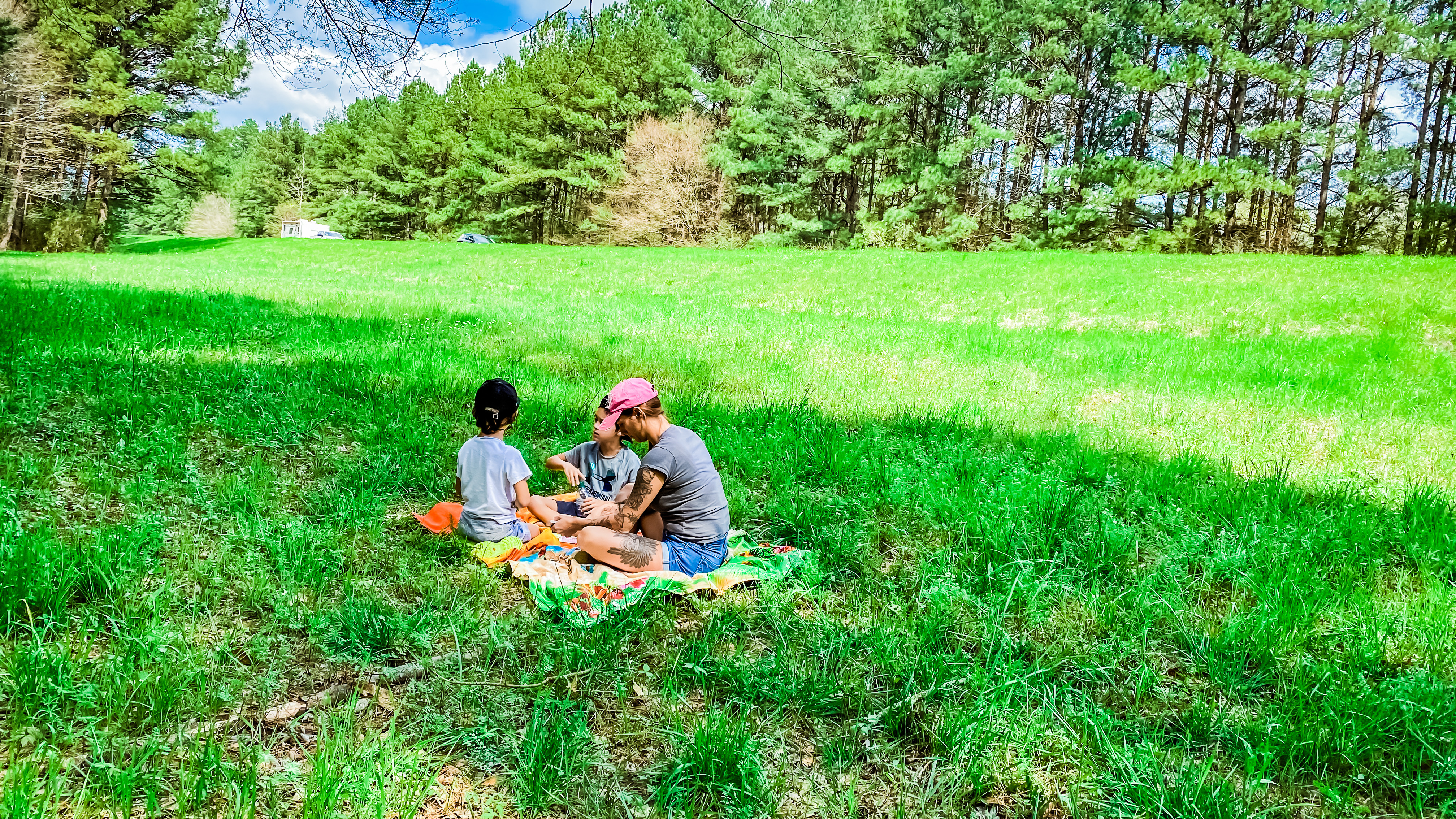 Maintenant il faut appeler l’assurance, car il n’y a pas le matériel à bord pour dépanner une roue tout seul. Ce n’est parfois pas simple en France, alors là, c’est un véritable défi. Je navigue dans les divers menus « Tapez 1 / Tapez 2… » et je finis par tomber sur quelqu’un qui ne fait aucun effort pour se faire comprendre. Après quinze minutes de lutte, on me dit qu’une dépanneuse viendra nous aider. Nous patientons dans l’herbe en contrebas. Valou prend sur elle. Luka également. Ils n’ont pas la forme. Heureusement que nous ne sommes pas sous la pluie, dans le froid, c’est déjà ça. 2h30 plus tard, le sauveur arrive, encore plus difficile à comprendre que la personne au téléphone. Tant qu’il bosse bien … Il change la roue non sans difficulté et remarque que la roue adjacente est dégonflée. La valve a été sectionnée. Il faudrait une deuxième roue de secours. Chose que nous n’avons pas …