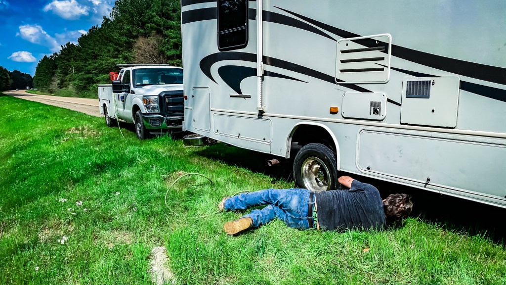 Nous avons une prescription à aller chercher … au Walmart bien sûr ! Il fait également pharmacie. Le temps de récupérer le traitement (qui ne sera finalement pris qu’une journée car il fait vomir Luka et rend Valou et Maxan encore plus malades), il est l’heure de mettre le RV chez Ford. Il y a une salle d’attente. On sort la tablette et on se met un petit film histoire de faire redescende la pression. 2h30 plus tard, notre RV a des chaussures toutes neuves et est prêt à courir vers le sud. Nous arrivons à Baton-Rouge sans embûche en début de soirée, pour n’y passer finalement qu’une nuit.