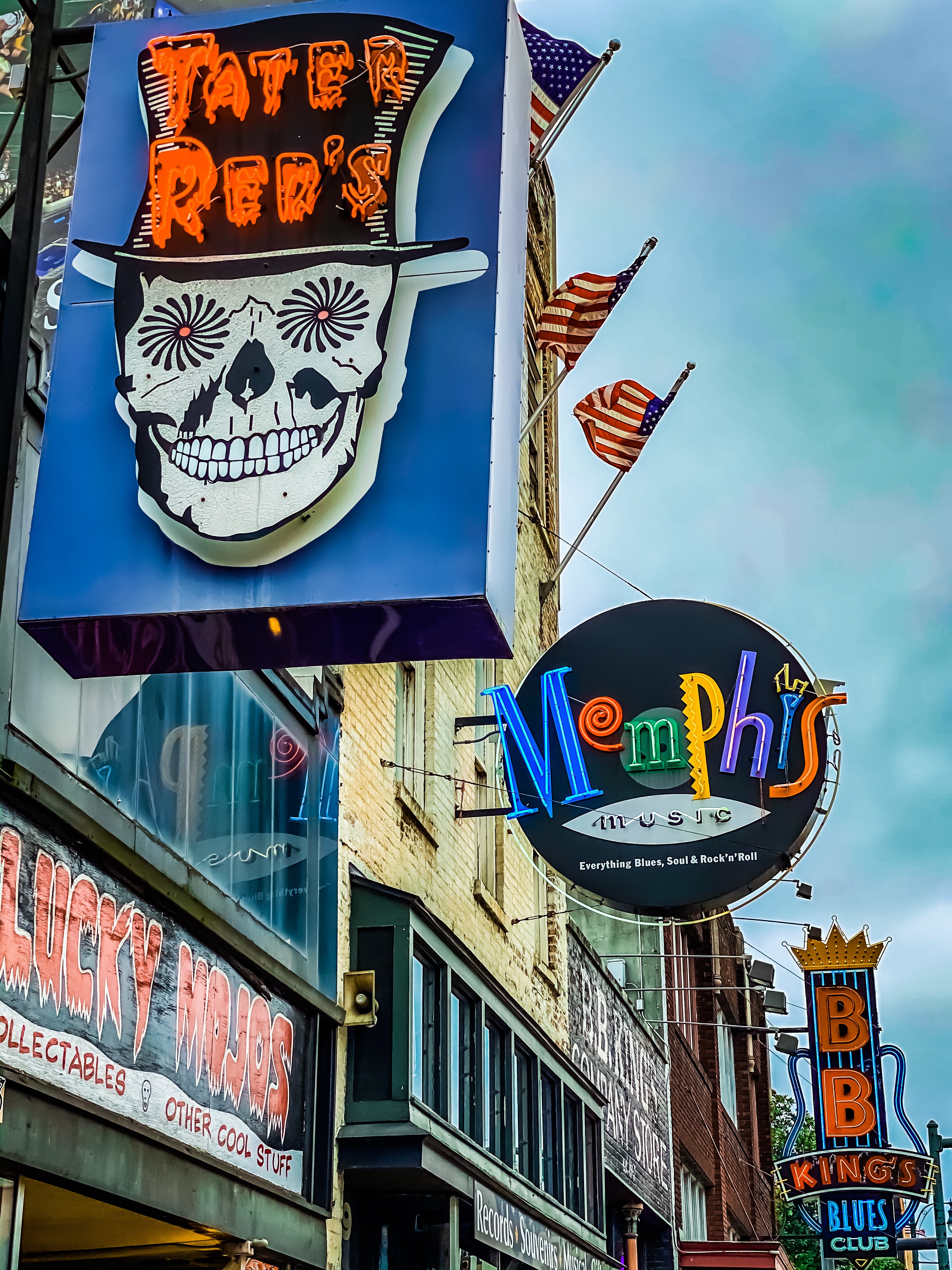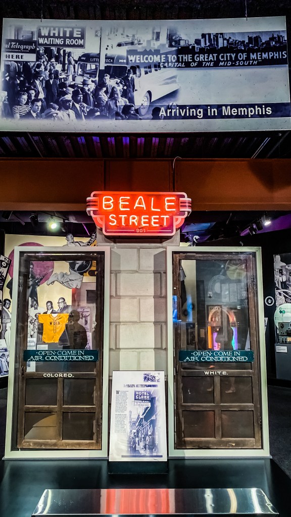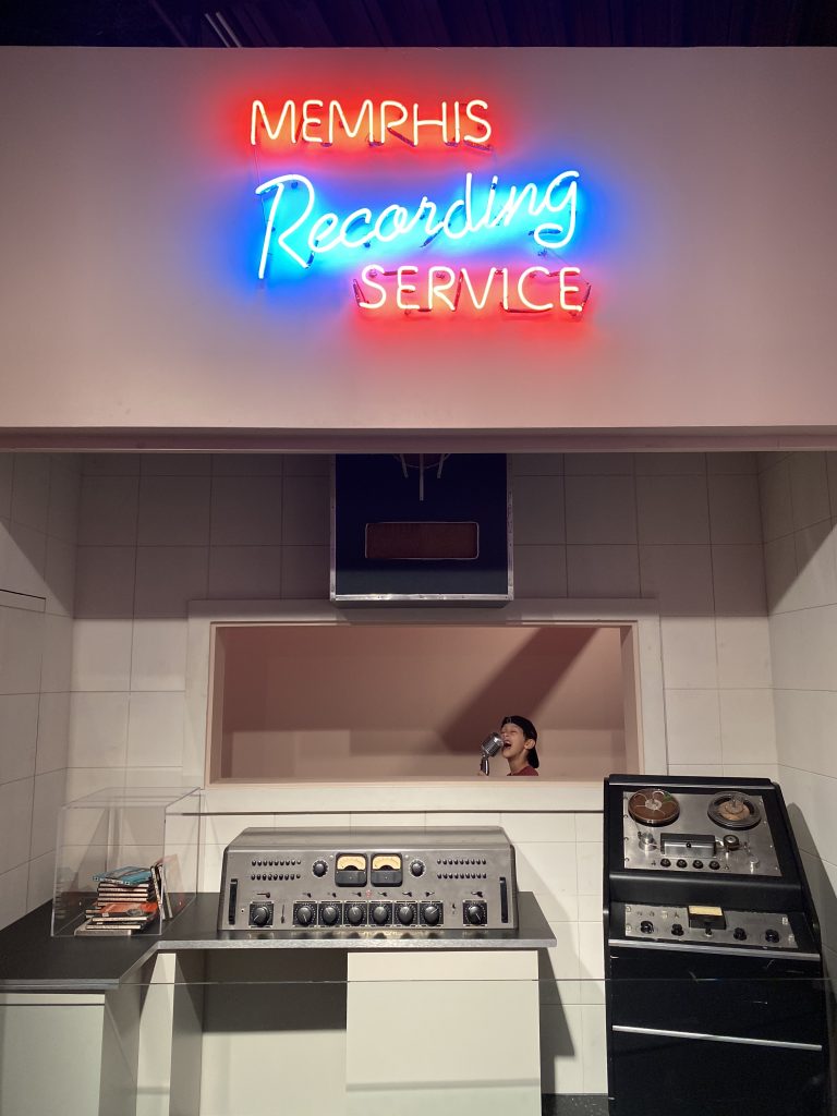 Memphis est mondialement connue, à plus d’un titre. Sinistrement, comme étant la ville où Martin Luther King fut assassiné en 1968. Mais aussi et surtout musicalement, comme étant le berceau du Blues, et de la Soul. Et le berceau n’est pas un mot choisi par hasard. Parmi les illustres artistes ayant grandi ou débuté à Memphis, on peut citer : Muddy Waters, B.B King, Johnny Cash, Elvis Presley, Carl Perkins, Jerry Lee Lewis, Aretha Franklin, Al Green, Tina Turner, Otis Redding, Issac Hayes … Rien que ça ! La liste non exhaustive en impose ! En tant qu’amoureux de musique, je me réjouis de pouvoir marcher sur les traces de ces légendes, le long de « Beale Street », regroupant toujours les plus célèbres clubs de musique de la ville. Visiter les studios dans lesquels ils ont enregistré des morceaux de légende, comme « Sun Studios » et « Stax Records ». Trouver l’inspiration au détour d’une guitare d’époque, d’un clavier mythique, de magnétophones à bandes ou du micro « Shure 55 » légendaire utilisé par le King lui même. Ça fait tourner la tête !