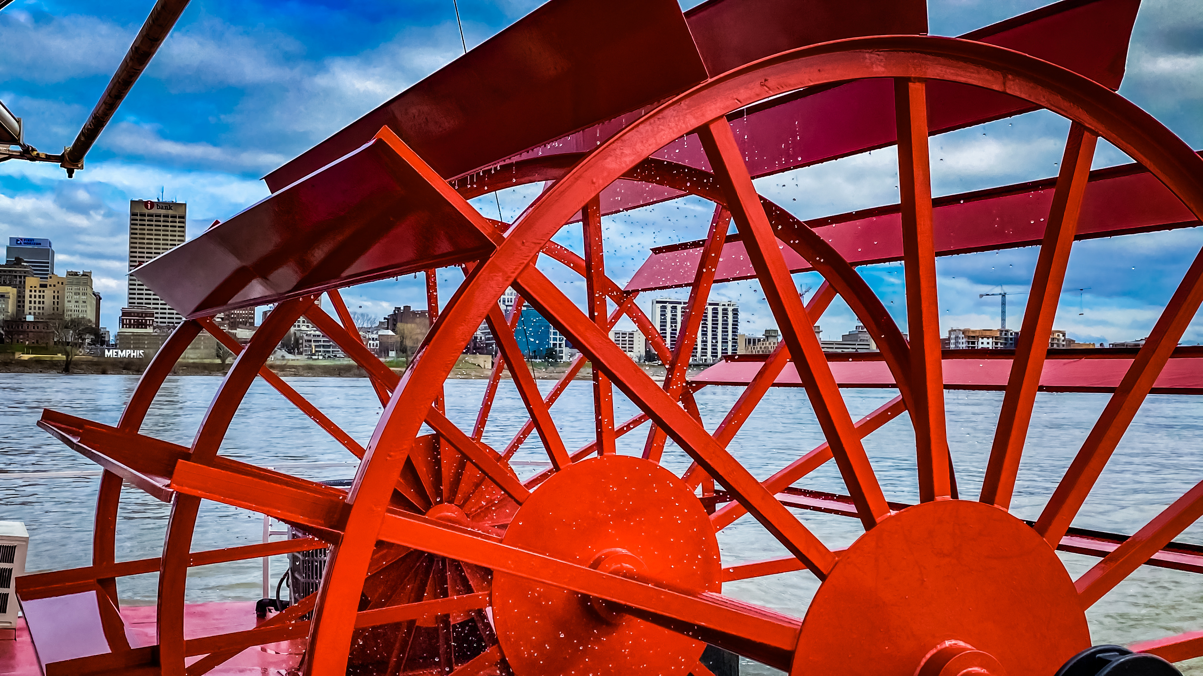 C’est la meilleure fenêtre météo de la semaine. Nous embarquons sur un bateau à aubes, pour une croisière d’une heure trente sur le Mississippi. Le mythe ! On l’avait imaginée par un grand soleil, avec un orchestre de Blues jouant des classiques du genre, un cocktail à la main, et toute la puissance du Tennessee dans les oreilles. Mais au final, la ballade n’est pas aussi idyllique qu’escomptée. Le secteur de Memphis est très industrialisé, les rives sont loin d’être exaltantes, l’eau est aussi trouble qu’une Guiness, il fait un froid de canard sur le pont, et par dessus le marché, un guide hurle dans un micro pendant toute la navigation (qui ne nous fera parcourir que 500 mètres tout au plus) histoire d’être plus présent que le bruit du gros moteur diesel qui peine à nous ramener au quai. Beaucoup de gens sur le bateau passent la croisière à dormir, le visage lesté, irrésistiblement attiré par leur table sur laquelle trône encore un paquet de pop corn éventré. Le rêve ! Ouais, on l’a fait !