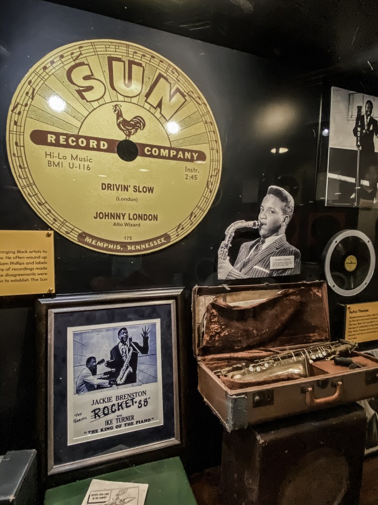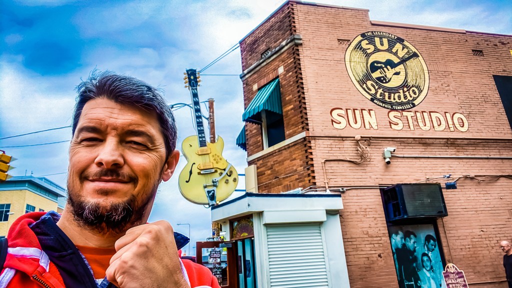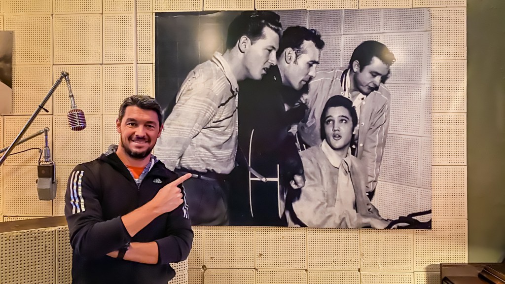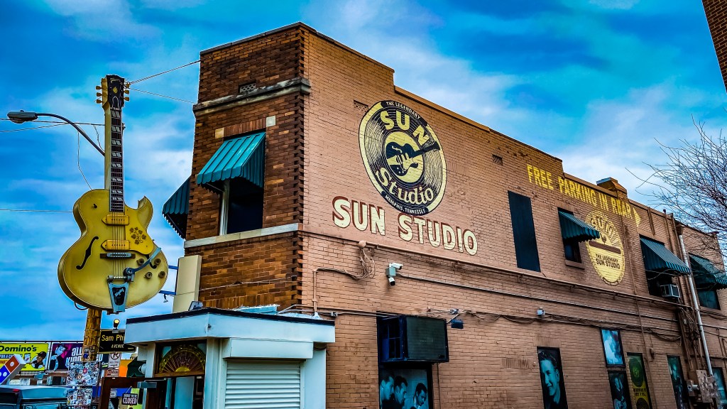 C’est au « Sun studio » que le premier morceau de Rock’n’Roll (Rocket 88) a été enregistré en 1951. C’est au « Sun Studio » qu’Elvis Presley est entré en 1953 pour demander à enregistrer deux morceaux pour sa mère, qui le propulseront au rang de star mondiale. C’est au « Sun Studio » qu’Elvis Presley, Carl Perkins, Johnny Cash et Jerry Lee Lewis se sont retrouvés autour du piano pour un boeuf mythique, intitulé « Million Dollar Quartet ». La pièce est restée identique. Le revêtement sur les murs est d’époque. L’acoustique est préservée. Et encore aujourd’hui, il est possible d’enregistrer (de nuit) dans ce lieu riche en histoire.