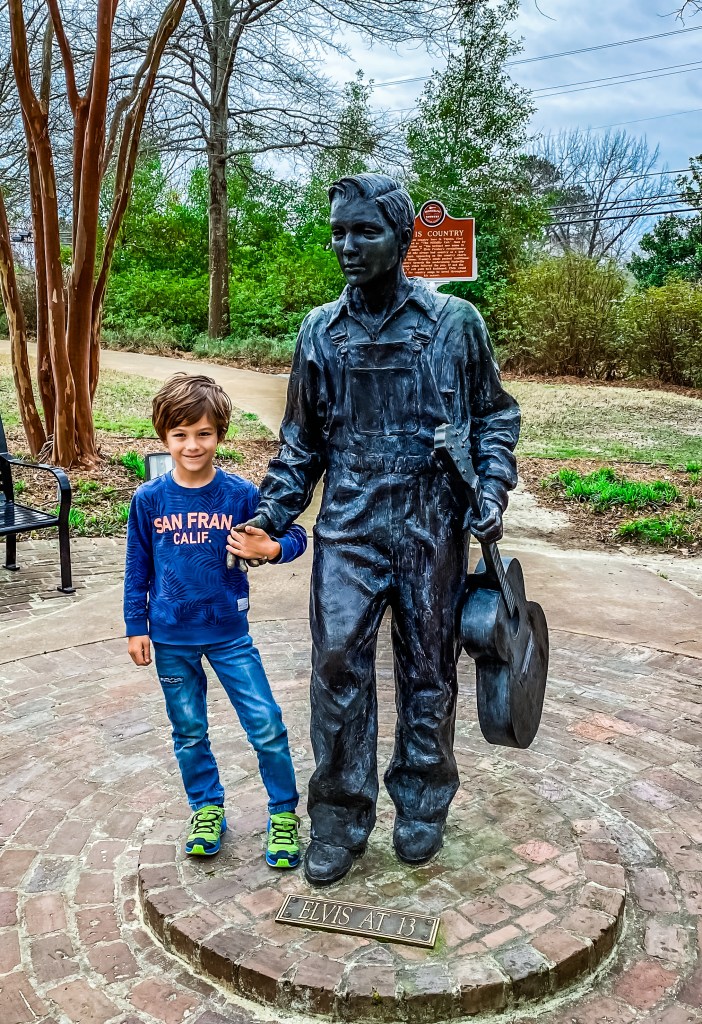Nous nous la jouons en musique, avec Eddy Mitchell, « Sur la route de Memphis », et roulons environ cinq heures pour rallier le berceau du Blues. Mais juste avant, nous nous arrêtons à Tupelo. C’est ici que le King Elvis Presley est né et a grandi jusqu’à ses treize ans. Nous nous devons de saluer sa maison d’enfance. Rien à voir avec la démesurée « Graceland » qu’il achètera par la suite à Memphis. D’ailleurs, nous n’irons même pas la visiter. Il y a davantage d’émotion et d’ondes de créativité à cet endroit. Et puis on parle ici de naissance, d’enfance, et non pas de fin de carrière et de mort.