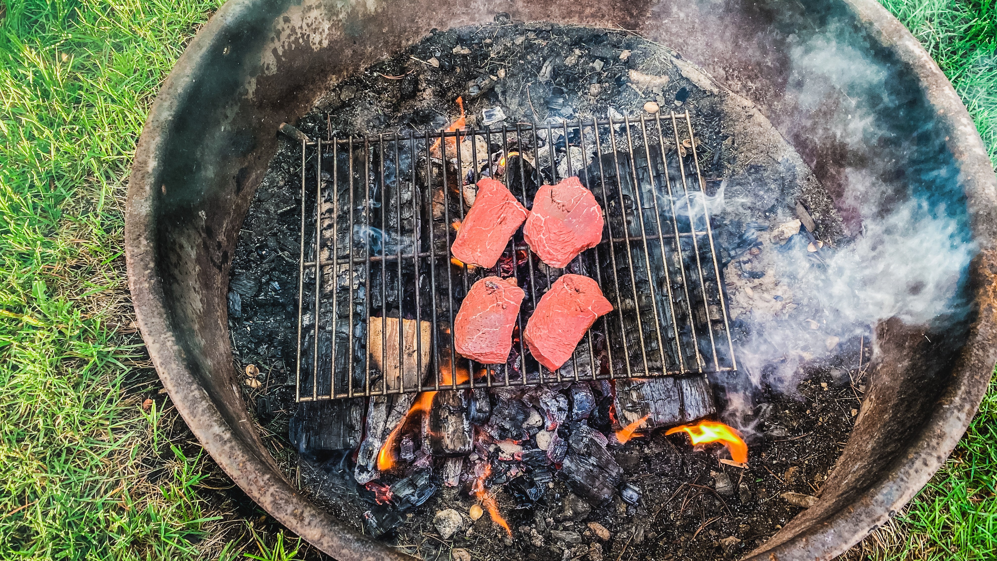 D’ailleurs, à la tombée de la nuit, après un bon repas cuit au feu de bois et alors que nous sommes devant un hypnotisant feu de camp, un voisin vient nous chercher. Il est du bon côté du camping. Son emplacement donne sur la montagne, où nous pouvons observer une famille d’élans en train de manger. Quel beau dessert pour les yeux. Ravis, nous allons profiter de quelques bûches supplémentaires puis allons nous coucher, entourés par la nature.