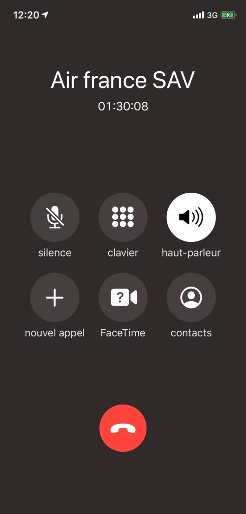Puisque nous avons le temps sur ce trajet, je tente d’appeler Air France (une fois de plus …). Je laisse la musique d’attente enchanter les premiers miles de conduite dans le haut parleur du téléphone. Et les miles défilent. Défilent. Ils défilent comme le temps de l’appel. Je n’en vois pas la fin. Je craque au bout de 1h30. Je re tenterai ma chance un autre jour.