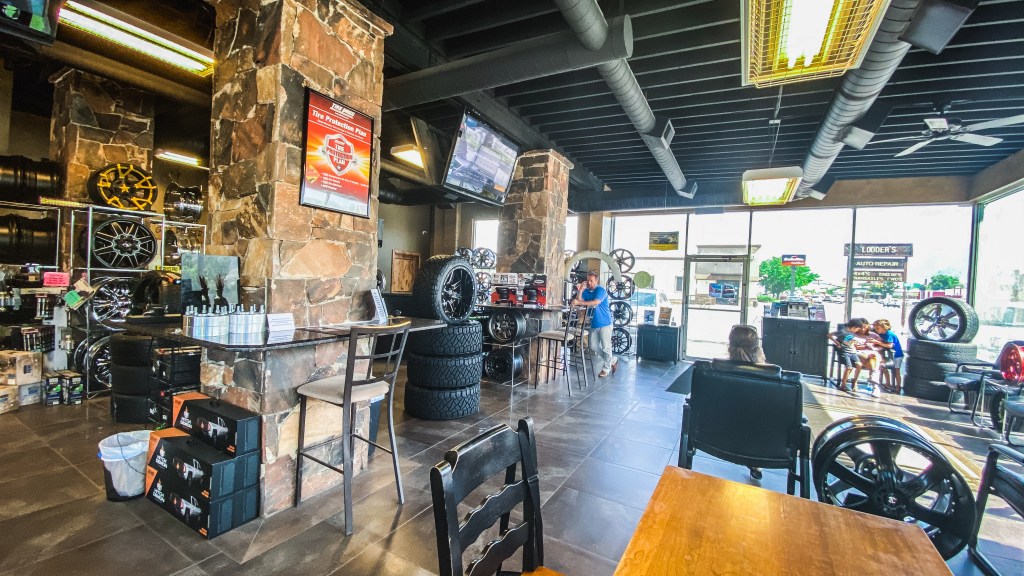 Le garagiste effectue une nouvelle rotation des roues. Il n’y a rien de plus à signaler. Tout va bien. Tant dans la structure des pneus que dans les roulements et systèmes de freinage. Bon, tant mieux ! Reprenons la route ! Nous avons plus de cinq heures à faire en direction de Yellowstone.