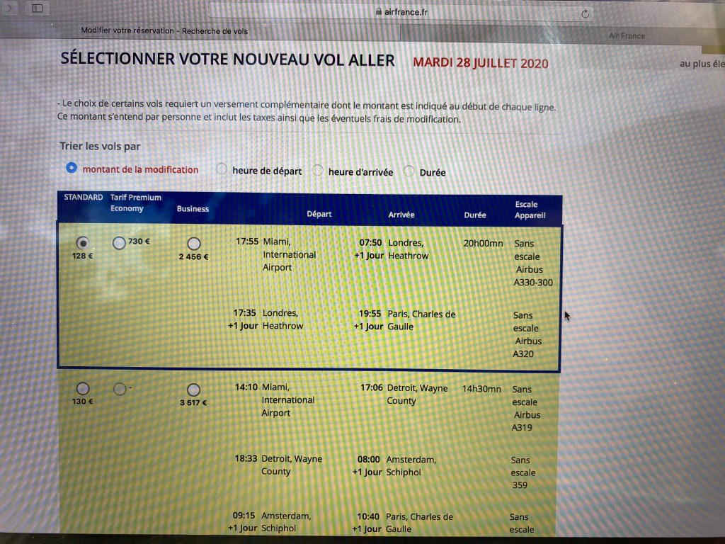 Par contre, pour les bagages supplémentaires que nous avions acheté, il faudra appeler Air France. Ça ne peut pas se faire par internet. Nous verrons ça plus tard. Je sens que ça va prendre du temps …
